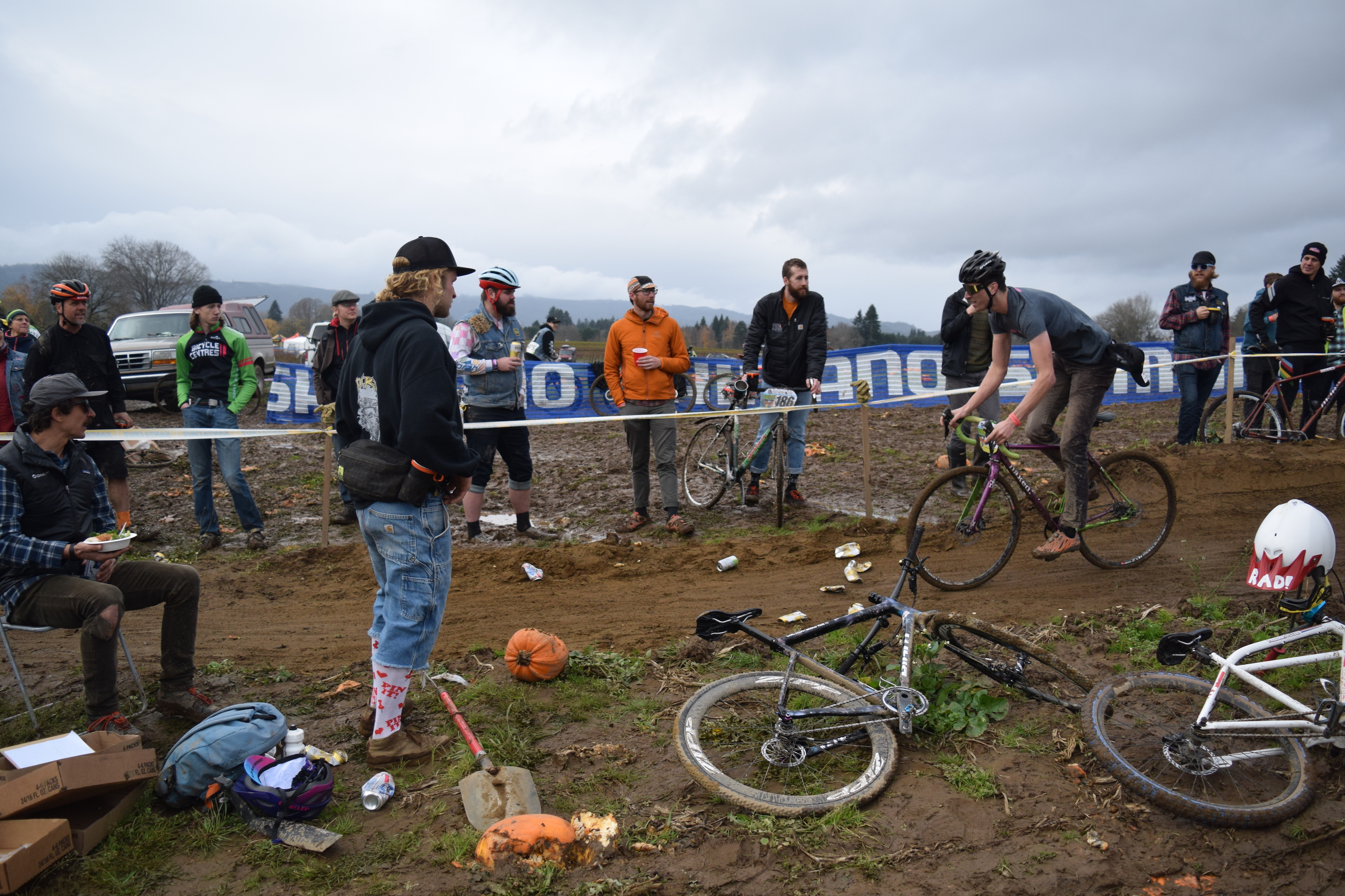 Mical turning heads on her way to qualifying. That’s pretty much it for qualifying. A bunch of us made it through, some other people didn’t There was some other stuff involving pumpkins, karaoke, and ‘big air’ road gap attempts on cross bikes, and beer. It was time to head to the bar, and rest up for Sunday’s main event.